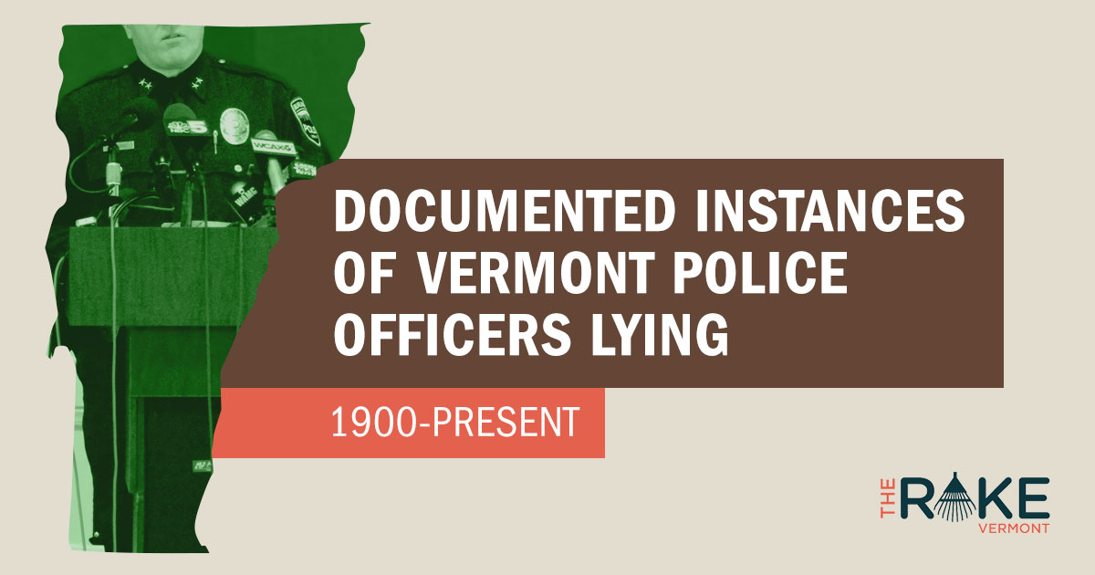 At The Rake Vermont we thought it would be worth documenting every time a Vermont police officer is caught lying. It’s also worth stating the obvious: as advocates and researchers have long shown, it’s impossible to count how many times police officers have lied. Even lies under oath in court proceedings, cynically coined “testilying” by NYPD officers, are often hidden from public scrutiny. We have compiled articles that show police have been caught lying at least fifty times since 1993. We will continually update this piece every time a Vermont officer of the law is caught abusing their power in this way.